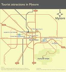 - ↑ "Mysore — Palace City Guide,Palace City Mysore Guide,Mysore Palace". Retrieved 2008-02-20.