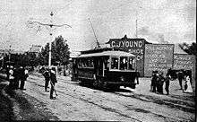 Various companies expanded the network from its initial line to Kensington, with eleven companies operating within six years, three more having already failed before constructing tracks.[11] The Adelaide to North Adelaide line opened in December 1878, a separate one from Port Adelaide to Albert Park in 1879, Adelaide to Mitcham and Hindmarsh in 1881, Walkerville 1882, Burnside, Prospect, Nailsworth and Enfield in 1883, and Maylands in 1892.[12] Various streets were widened especially for the tram lines including Brougham place, North Adelaide by 10 feet (3 m) and Prospect road to a total width of 60 feet (18 m).[13][14]