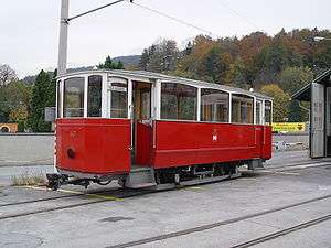 The first tramline opened for public service on 15 July 1905. It was in effect an extension of the service provided by the existing "L.B.I.H.i.T"[3] which had been operating a one-meter gauge steam railway service between the south-western edge of Innsbruck and Hall in Tirol, ten kilometers to the east, since 1891.[4] The new tramline was 2.3 km (1.4 mi) long, connecting the Südbahnhof (south station) with the Staatsbahnhof (main station - today known as the west station). A branch line led from the Staatsbahnhof, over an iron bridge across the Arlberg railway line, to the Bergiselbahnhof on the edge of the city. Initially the tram service operated only between 07.00 and 20.00 hrs. The trams were powered by DC electricity from 500 Volt overhead wires.