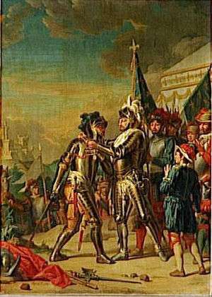 ![]() The Battle of Scannagallo in 1554 by Giorgio Vasari, in the Palazzo Vecchio of Florence. | |||||||||