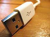 A USB Series “A” plug, the most common USB plug with the trident symbol visible.