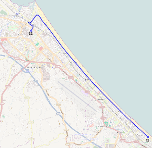 Until 2 November 1998, the Rimini terminus of line 11 was in the central Piazza Tre Martiri. On that date, following the conversion of the piazza into a pedestrian area, the terminus was moved to Piazzale San Girolamo, on Via Dante Alighieri. From 1 August 2001 the Riccione terminus, previously sited in Piazzale Giardini, was moved to the area of Riccione Terme, in Piazzale Marinai d'Italia, while the services limited to piazzale Curiel are shown as "11/".
