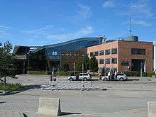 Trondheim Airport is a joint military and civilian airport located in the municipality of Stjørdal in Nord-Trøndelag, with the northern part of the airport bordering the town of Stjørdalshalsen.[6] To the west, the airport borders the Trondheimsfjord, and to the south the Stjørdal River.[7] Combining the functions as an international, domestic and regional airport, it is located 10 nautical miles (19 km; 12 mi) east of Trondheim.[1] Most of the airport area is owned by the Norwegian Ministry of Defence, although the civilian facilities and the air traffic control are owned and operated by Avinor, a subsidiary of the Norwegian Ministry of Transport and Communications.[8]