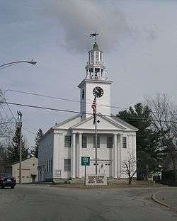 Settled in 1762, by 1815 the community had grown so much that it sought its own incorporation.[3] It was set off from Marlborough that year, and included parts of Fitzwilliam, Swanzey and Richmond. A prominent citizen and friend of Governor John Taylor Gilman, Captain Benjamin Mann of Mason, suggested the name Troy. His daughter, Betsy, was married to Samuel Wilson, famous as "Uncle Sam", and at that time a resident of Troy, New York. At least seven members of Wilson's family were living in the town at the time, thus securing the name. The town hall, built in 1813-1814 near the rail-fenced common, was originally the village meetinghouse.[4]