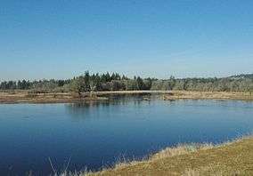 Wapato Lake Unit is located about 15 miles (24 km) to the west of the main refuge, near the city of Gaston along Oregon Route 47 in Washington and Yamhill counties.[16][37] The area was once the site of Wapato Lake, whose soil held an organic-rich peat that sustained a shrub swamp ecosystem. The wapato plant (Sagittaria fasciculata) grew in the upper marsh of the Wapato Lake Basin and was harvested by Native Americans.[33][38] In 1892, attempts began to drain the 800 acres (320 ha) lake to increase farmland,[16][39] with the Wapato Improvement District completing the effort in the 1930s.[40] Valley forests, prairies, and wetlands encompass the region today,[33] including two small streams, Ayers and Wapato creeks.[41]