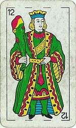 The game is played with a Spanish deck of cards, which is divided into four suits: Oros (coins), Espadas (spades), Copas (cups) and Bastos (clubs). The 8s and 9s of each suit are excluded, leaving forty cards in the deck.[4][5] The object of the game is to score the most points in the baza and from declarations (see Scoring below).[2]
