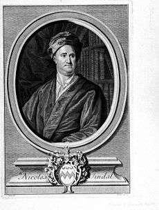 Dr Tindal's nephew, Rev Nicolas Tindal (1687–1774), was the translator and continuer of the History of England by Paul de Rapin. Very few comprehensive histories existed at the time and Tindal wrote a three volume "Continuation", a history of the Kingdom from the reign of James II to that of George II. Something of a controversialist, he was also known for having been defrauded of his uncle's inheritance by Eustace Brugnell, leading to some lines of Alexander Pope. Rector of two livings, Chaplain of Greenwich Hospital and a Fellow of Trinity College, Oxford,[25] Tindal was sufficiently prosporous to allow his son, Capt George Tindal RN to settle in Coval Hall, Chelmsford.[26]