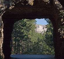 Portions of US 16A are known as the Iron Mountain Road. The route includes most of the tunnels on the South Dakota state highway system, including the only four-lane tunnel in the state, just north of Keystone. Part of the highway is also a boundary of the Black Elk Wilderness. The Iron Mountain portion of the road is not maintained in the winter. The road, like several other scenic roads in the Black Hills, was originally laid out by Governor Peter Norbeck, specifically to create a very scenic, slow-speed road for tourists. The section of US 16A from SD 89 to SD 244 is known as the Peter Norbeck Memorial Byway in honor of the governor.[2] At the highest point of the byway, on the summit of Iron Mountain, there is a small memorial to Governor Norbeck.