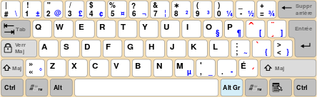In some variants of this keyboard ⇪ Caps Lock is ⇪ Fix Maj (short for Fix Majuscule = Lock Upper Case) or ⇪ Verr Maj (short for Verrouiller Majuscule = Lock Upper Case), ↵ Enter is ↵ Entrée,[21] and Esc is Échap.