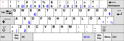 - ↑ US Tastaturbelegung: amerikanische Tastatur [US keyboard design] (in German), DE: in4mation