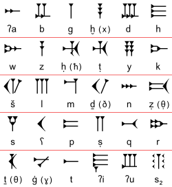 - ↑ Schniedewind, William M. and Hunt, Joel H. (2007). A primer on Ugaritic: language, culture, and literature (p. 20). Cambridge University Press, ISBN 0-521-87933-7, ISBN 978-0-521-87933-0, 226 pages.
