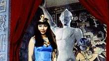 Nagi Saijyo was portrayed by Yasue Sato (佐藤 康恵 Sato Yasue).[28] According to the production crew, Nagi was meant to be Komon's savior in the past. To completely shroud the character, she was given the appearance of Himeya's shadow while retaining a Night Raider glove. This plan however never came to realization after the series was forced to be ended quickly due to poor ratings.[29]