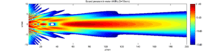 The beam pattern of a transducer can be determined by the active transducer area and shape, the ultrasound wavelength, and the sound velocity of the propagation medium. The diagrams show the sound fields of an unfocused and a focusing ultrasonic transducer in water, plainly at differing energy levels.