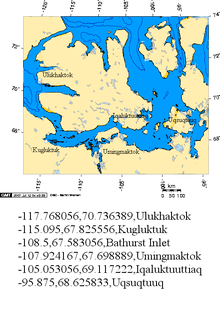 | Coordinates: 70°44′11″N 117°46′05″W / 70.73639°N 117.76806°WCoordinates: 70°44′11″N 117°46′05″W / 70.73639°N 117.76806°W | |