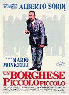 An Average Little Man (Italian: Un borghese piccolo piccolo, literally meaning a petty petty bourgeois, also known in English as A Very Little Man) is a 1977 Italian drama film directed by Mario Monicelli. It is based on the novel of the same name written by Vincenzo Cerami. The first hour is a fine example of commedia all'italiana but the second part is a psychological drama and a tragedy. The film was an entrant in the 1977 Cannes Film Festival.[1]