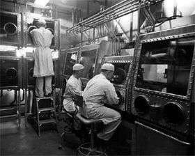 The U.S. Army Biological Warfare Laboratories (USBWL) were a suite of research laboratories and pilot plant centers operating at Camp (later Fort) Detrick, Maryland, USA beginning in 1943 under the control of the U.S. Army Chemical Corps Research and Development Command. The USBWL undertook pioneering research and development into biocontainment, decontamination, gaseous sterilization, and agent production and purification for the U.S. offensive biological warfare program.[1] The Laboratories and their projects were discontinued in 1969.