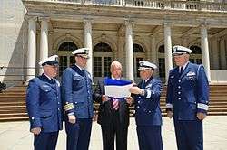 On June 19, 2009, the Commandant of the Coast Guard awarded the Coast Guard Unit Commendation to Auxiliary members for "performance...nothing short of stellar" from the period of June 24, 1999, to June 23, 2009.[7] On the 75th anniversary of the USCG Auxiliary, June 23, 2014, the Commandant awarded another Coast Guard Unit Commendation ribbon to all Auxiliarists.[8]