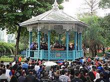 Edir Macedo still wanted to start his ministry; in 1975 Soares and another pastor invited him to inaugurate the Cruzada do Caminho Eterno, which was a kind of embryo of the Universal Church. The services were held in some cinemas they rented for a few hours.[6] To increase the number of members Macedo began to preach in a gazebo at the main square of the Méier neighborhood.[7]