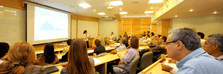 The university manages an ambitious program for extension courses, consisting mostly in providing full-time education to financially debilitated non-students of varying education backgrounds.[36] Besides, the UFRJ contributes heavily to Rio de Janeiro's public health with its nine college hospitals, providing for over one thousand vacancies, and its deep integration with the State's health treatment network.[37] In 2010, the institution achieved a "very good" evaluation and a maximum score in the Ministry of Education's General Index of College Courses ("Índice Geral de Cursos", or IGC in Portuguese).[38][39] Its clear emphasis on research alludes to the personal motto of one of its most famous and distinguished scientists:[40]