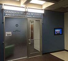The Graduate School of Public and International Affairs (GSPIA) is one of 17 schools comprising the University of Pittsburgh. Founded in 1957 to study national and international public administration, GSPIA prides itself on its "Local to Global" distinction.[1] As of 2015, it is one of only two policy schools with programs in the top 20 for both International Relations (Foreign Policy, 2015[2]) and City Management and Urban Policy (U.S. News and World Report, 2012[3]). The current mayor of Pittsburgh, Bill Peduto, is a GSPIA alumnus.[4]