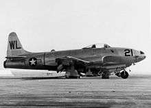 Occupational duty in Japan lasted till May 1946, when MAG-31 was notified to prepare for the termination of its Japanese assignment; VMF-311 was going home.[4] Between July 1946 and April 1947 the squadron had a sleeping existence and being transferred to MAG-32 and later MAG-12 while consisting of one officer, but in 1949 VMF-311 became the first West Coast Marine jet squadron when it started flying the TO-1 Shooting Star. Coincidentally the squadron was re-designated Marine Fighter Squadron 311 (VMF-311) and around that time acquired the code letters WL, phonetically pronounced as "William Love," but from which also came the nickname "Willy Lovers".[5] The squadron quickly transitioned to the F9F Panther in October 1949 and found itself once again preparing for war by November 1950, arriving once again at Yokusuka airfield in Japan.