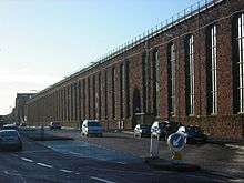 The VSEL Heavy Engineering Workshop located at Michaelson Road in the Barrow Island area of Barrow-in-Furness, Cumbria, England is a Grade II listed former ammunitions workshop that belonged to Vickers Shipbuilding and Engineering.[1] Known locally as the 'Gun Shop' the vast complex was constructed in stages between 1875 and 1900 and consists of 42 by 11 bays (roughly 1,100 feet (335 m) by 360 feet (110 m) or over 9 acres (3.6 ha) of land - a larger footprint than nearby Devonshire Dock Hall).[1] The building was a major component of the engineering division within Vickers and supplied the British Army and Royal Navy throughout World War I and World War II. Everything from basic shells to heavy duty gun turrets for ships, tanks and other land vehicles were produced and assembled at the workshop. The Historic England states the following of the building: 'It clearly indicates the scale of operation of the shipbuilding and engineering works at the turn of the century; its roadside frontages make a major contribution to the industrial scene in a town where the buildings of other major C19 industries have been almost completely swept away.'