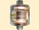 A vacuum variable capacitor is a variable capacitor which uses a high vacuum as the dielectric instead of air or other insulating material. This allows for a higher voltage rating[1] using a smaller total volume. There are several different designs in vacuum variables. The most common form is inter-meshed concentric cylinders, which are contained within a glass or ceramic vacuum envelope, similar to an electron tube. A metal bellows is used to maintain a vacuum seal while allowing positional control for the moving parts of the capacitor.[2]