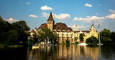 Vajdahunyad Castle (Hungarian: Vajdahunyad vára) is a castle in the City Park of Budapest, Hungary. It was built in 1896[1] as part of the Millennial Exhibition which celebrated the 1,000 years of Hungary since the Hungarian Conquest of the Carpathian Basin in 895. The castle was designed by Ignác Alpár to feature copies of several landmark buildings from different parts the Kingdom of Hungary, especially the Hunyad Castle in Transylvania (now in Romania). As the castle contains parts of buildings from various time periods, it displays different architectural styles: Romanesque, Gothic, Renaissance, and Baroque. Originally, it was made from cardboard and wood, but it became so popular that it was rebuilt from stone and brick between 1904 and 1908. Today, it houses the Museum of Hungarian Agriculture, the biggest agricultural museum in Europe.[2]