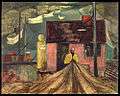 Smith continued to refine his "antique" style and apply it to the Social Realism movement in the later 1930s. Cultural artifacts of the era populate his paintings: telephone poles, storefronts, jalopies, fishing draggers, and catboats describe scores of paintings that he produced while employed by the FAP.