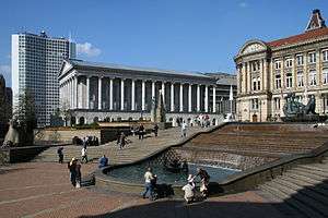 Victoria Square is a pedestrianised public square in Birmingham, England. It is home to both the Town Hall and the Council House, and directly adjacent to Chamberlain Square.