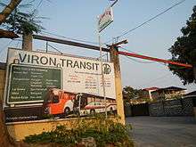 Viron Transportation Company or Viron Transit is a bus company servicing the Ilocos Region, Philippines.[1] The bus company is owned by millionaire Santiago Rondaris' daughter. It formerly operated as far as the second district of Ilocos Sur but has started to operate as far as Laoag City after the collapse of its related bus company Times Transit.[2]
