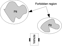 Virtual fixtures can be either guiding virtual fixtures or forbidden regions virtual fixtures. A forbidden regions virtual fixture could be used, for example, in a teleoperated setting where the operator has to drive a vehicle at a remote site to accomplish an objective. If there are pits at the remote site which would be harmful for the vehicle to fall into forbidden regions could be defined at the various pits locations, thus preventing the operator from issuing commands that would result in the vehicle ending up in such a pit.