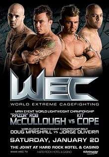 WEC 25: McCullough vs. Cope was the first mixed martial arts event held by the World Extreme Cagefighting under Zuffa management. The event was held on January 20, 2007. WEC 25's main event was a championship fight for the vacant WEC Lightweight Title, between rivals Rob McCullough and Kit Cope. The co-main event was a WEC Featherweight Title bout between champion, Urijah Faber and challenger Joe Pearson.