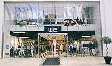 WE, also known as WE Fashion, is originally a Dutch fashion chain which sells clothing, shoes, bags and other accessories. WE has approximately 240 shops and 3,000 employees in the Netherlands, Belgium, Germany, France, Luxembourg, Austria and Switzerland. WE is part of the European fashion conglomerate Logo International, which also owns the brands O'Neill and Van Gils. WE is a company with a vertical organisation that designs its collections in-house. Advertising, marketing and store concepts are also developed internally. WE has a sales training programme called WE University.