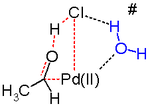 Another key step in the Wacker process is the migration of the hydrogen from oxygen to chloride and formation of the C-O double bond. This step is generally thought to proceed through a so-called β-hydride elimination with a cyclic four-membered transition state: