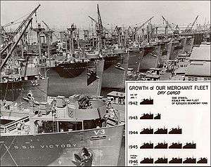 The War Shipping Administration (WSA) was a World War II emergency war agency of the US government, tasked to purchase and operate the civilian shipping tonnage the US needed for fighting the war. Both shipbuilding under the Maritime Commission and ship allocation under the WSA to Army, Navy or civilian needs were closely coordinated though Vice Admiral Emory S. Land who continued as head of the Maritime Commission while also heading the WSA.[1][2]