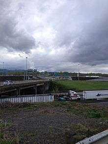 SR 432 has been part of the Washington state highway system since 1937, when it was designated as a branch of PSH 12.[25] The LongviewKelso branch of PSH 12 traveled 5.47 miles (8.80 km) east from an intersection with the Ocean Beach Highway, signed as PSH 12 and U.S. Route 830 (US 830), onto Nichols Boulevard around Lake Sacajawea and Tennant Way in Longview and crossed the Cowlitz River to Kelso, where the highway ended at an intersection with the Pacific Highway, signed as PSH 1 and US 99.[26][27][28] The LongviewKelso branch of PSH 12 was replaced by SR 832 during the 1964 highway renumbering and existed until US 830 was decommissioned in 1967,[29] as SR 432 was established as an auxiliary route of SR 4 before the highway system was codified in 1970.[2][30][31] SR 432 was re-aligned onto its present route, Industrial Way,[32] in 1991 to end at SR 4 in West Longview and to serve the Port of Longview.[2][33][34] The eastern terminus of SR 432, an interchange with I-5 nicknamed the Longview Wye,[14] was reconstructed by WSDOT beginning in December 2009.[35][36] WSDOT removed the northwest loop ramp, which connected Old Pacific Highway to southbound I-5,[37] and replaced it with an improved interchange with Talley Way that opened on October 28, 2011.[13][17][38]