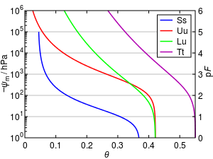 The shape of water retention curves can be characterized by several models, one of them known as the van Genuchten model:[1]