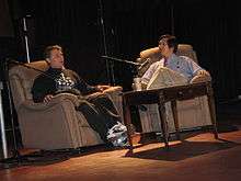 Festival curator Joseph C. Chen (right) talking with director Ladd Ehlinger Jr. about his film Flatland at the 2007 festival.