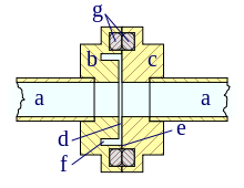d. gap between flange faces (width exaggerated by factor of 4)