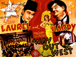 Way Out West is a Laurel and Hardy comedy film released in 1937. It was directed by James W. Horne, produced by Stan Laurel and distributed by Metro-Goldwyn-Mayer.[1] This was the second picture for which Stan Laurel was credited as producer – the first was 1936's Our Relations. Laurel served in that uncredited capacity for the duo's entire career.
