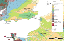 The Weald–Artois anticline is a large anticline, a geological structure running between the regions of the Weald in southern England and the Artois in northeastern France. The fold formed during the Alpine orogeny, from the late Oligocene to middle Miocene as an uplifted form of the Weald basin through inversion of the basin. The folding resulted in uplift of about 180 metres (590 ft),[1] though concurrent erosion may have substantially reduced the actual height of the resulting chalk ridges.