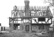 This sixteenth-century building was originally part of a larger building at Sundridge, Kent. It is timber-framed with a crown-post roof.[66] The building dates from between 1492 and 1537. It was the first building acquired by the Museum. Dismantled in 1968, it was re-erected at the Museum at a site that later proved to be unsuitable. Therefore, it was decided that the building should again be dismantled and re-erected at another site within the Museum, with modern extensions designed to allow the building to be better interpreted by visitors.[67] The building was dismantled in December 2001[68] and reconstructed for the second time between February and May 2002.[69] The interior of the building has been re-created as a working Tudor kitchen.