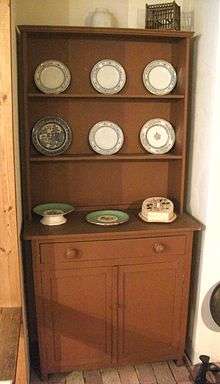 A Welsh dresser (British English) or a china hutch (American English), sometimes known as a kitchen dresser or pewter cupboard, is a piece of wooden furniture consisting of drawers and cupboards in the lower part, with shelves and perhaps a sideboard on top. Traditionally, it is a utilitarian piece of furniture used to store and display crockery, silverware and pewter-ware, but is also used to display general ornaments.[1][2][3]