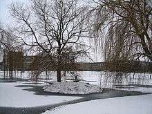 The Cavendish Laboratory from across the lake in winter
