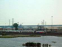 Portion of the Morris Canal ran through Kearny Point, unused portions which remain today.[5] West Hudson is criscrossed with rail passenger and freight rail lines,[6][7] including those of Amtrak, New Jersey Transit, and PATH, the last of which maintains a station at Harrison, at the site of the former Manhattan Transfer. The Kearny Connection is a major rail junction. The proposed high-speed rail line known as the Gateway Project will traverse the area and includes the replacement of the Portal Bridge.
