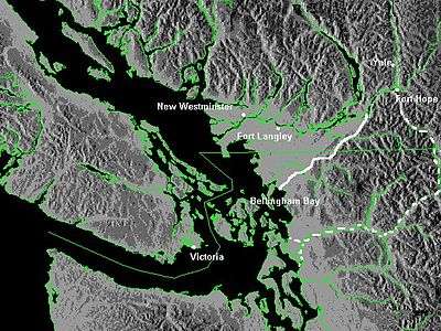 The Whatcom Trail was an overland trail from the Puget Sound area of Washington Territory during the Fraser Canyon Gold Rush of 1858. Named for the then-chief of the Nooksack people on Bellingham Bay, where the trail began at Fairhaven (now a trendy Bellingham neighbourhood), the route used went via a route known as the Columbia Valley, which is a lowland route connecting the mid-Nooksack River area with Cultus Lake and the lower Chilliwack River in the Upper Fraser Valley, about 80 km east of today's Vancouver. In 1858, T. G. Richards built the first brick building in Washington as an outfitter for those using the Whatcom Trail.