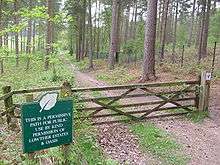 Whinfell Park was at the core of the forest. Its proximity to Inglewood Forest meant that it was mentioned in court documents relating to disputes between the two areas. The park contained two frequently-mentioned landmark trees: the Harthhorn Tree and the Three Brother Tree.[3] The harthorn tree had a hart's horn embedded in it. The Three Brother Tree was the sole survivor of three unusually large oaks called the Three Brethren. The site of the Harthorn Tree is marked on old maps. The name "Three Oaks" is used within the Center Parcs site. By 1779, the park had been divided into farms by enclosure.[1][4]