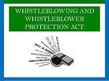 A whistleblower is a person who exposes any kind of information or activity that is deemed illegal, unethical, or not correct within an organization that is either private or public. The Whistleblower Protection Act was made into federal law in the United States in 1989. It was made to protect federal whistleblowers who work for the government and report agency misconduct.