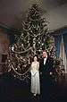President John F. Kennedy and First Lady Jacqueline Kennedy with the first themed Blue Room tree in 1961.